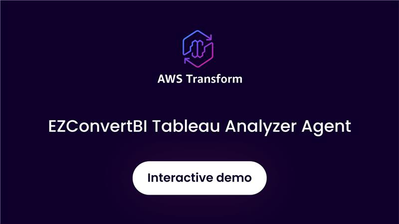 BI modernization isn’t just moving reports, it’s shortening the distance between a question and an answer. EZConvertBI on AWS Transform brings an in-account, self-service path to Tableau and Power BI modernization, using GenAI to understand your dashboard footprint, surface migration readiness, and automate conversion, without sending dashboards or data outside your AWS environment. The result: a transparent, low-friction way to prove what’s possible and build momentum before you scale.